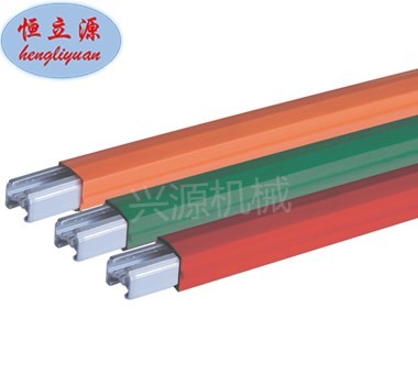 滑觸線用于給移動中的設備供電,由兩部分組成,滑線導軌(固定部分,與電源相接,常導軌由單長4m/根或者6米/根連接而成),集電器(滑動部分,可在滑線軌道上或內(nèi)滑動并與銅條接觸取電,集電器用于與移動電機相連)。